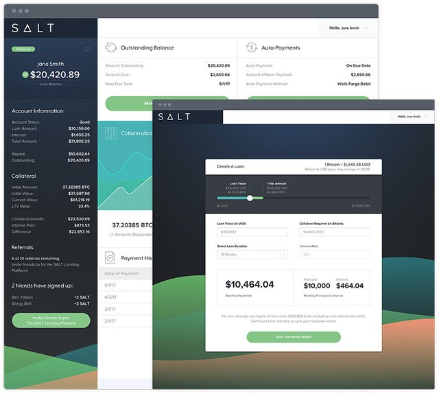 SALT Lending Platform: Borrower View While they are likely to evolve and change somewhat between now and the launch of our platform, we'd like to share the first view of our borrower dashboard
