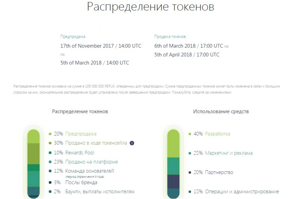 Данные по токены RepuX и об ICO