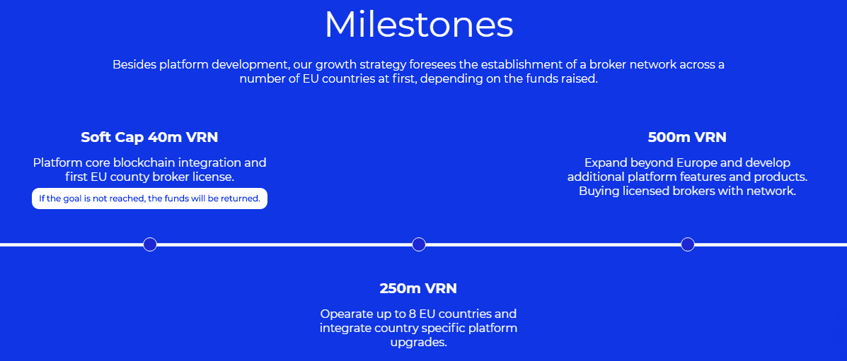 Платформа Вернама поражает Европу по всем целям и задачам. Клиенты могут купить стандартную страховку и получать вознаграждения, которые представлены в виде токенов VRN, которые так же, как и комиссия брокера. Платформа будет обслуживать клиентов со всего мира. Сама платформа разрабатывает интеллектуальный контрактный договор страхования для взаимозависимости нескольких законов стран.