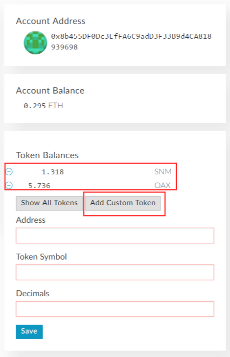 MEW위 우측에 Add Custom Token을 클릭합니다