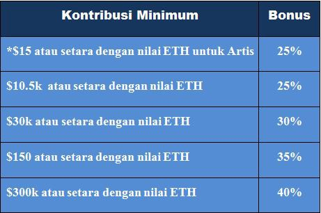 *Khusus untuk artis yang masuk dalam daftar putih. Syarat masuk daftar putih yaitu artis visual yang memiliki karya seni dan situs artis dan terdaftar di All Public Art akan menerima Bonus 20% dengan berkontribusi minimal 0.5 ETH