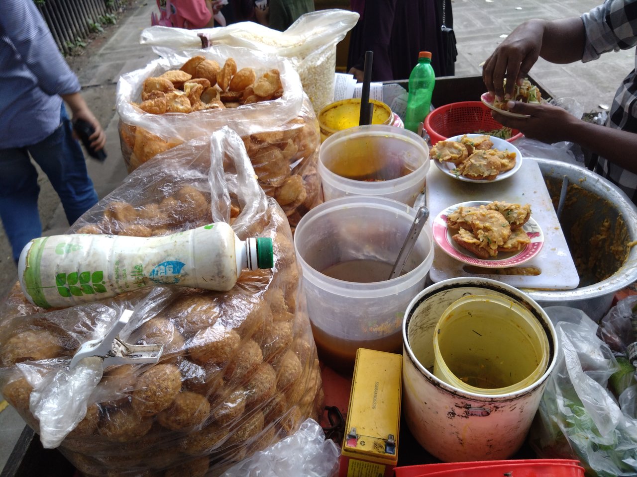 We asked him to prepare it and sat down at the seating area on the roadside. After a few minutes, he prepared our food. First, he gave it to the children. They started eating happily. Then we took some. The fuska and bhelpuri that the man had prepared were pretty good. The price was right, and the number of servings was also high. In this way, sitting on the roadside with the family and buying something to eat is a different kind of pleasure. I paid the bill after eating.