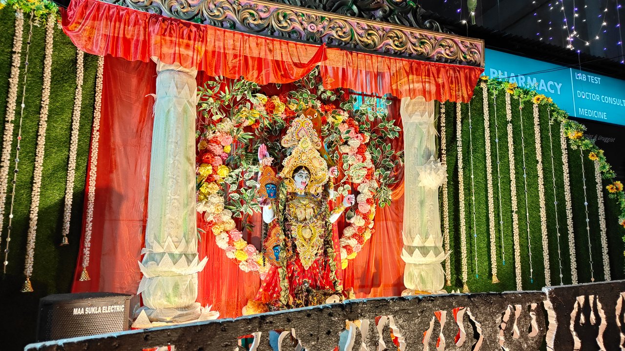 এখানে, মা কালীর পিছনে কালীয়া সর্পের মাথায় শ্রী কৃষ্ণের দন্ডায়মান মূর্তি অপরূপ লাগছিল।