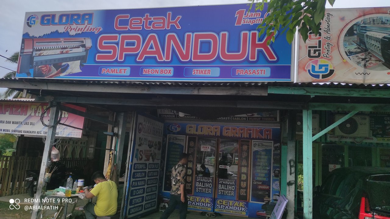 Percetakan Glora Grafika beralamat di Jalan Exxon Mobil Simpang Rangkaya Kecamatan Tanah Luas Kabupaten Aceh Utara, Aceh kode pos 24376, dengan Nomor Hp/WA 081327225525