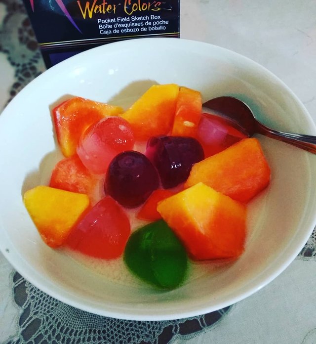 Alhamdulillah... Wa syukurillah...kasih hadiah buat diri sendiri dulu 🤩🌹ada pepaya dan jeli diguyur yogurt sama si Koi dari Pak Yudhi 🤗 .