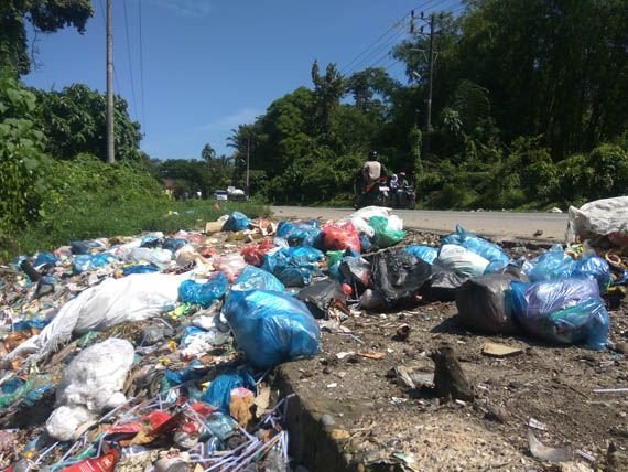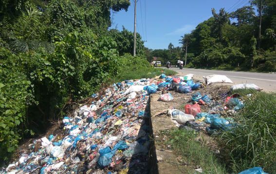Kenapa penulis sebutkan, sampah rumah tangga yang menumpuk di pinggir jalan tersebut, sebagai limbah tidak bertuan. Karena sampah tersebut dibuang warga di pinggir jalan Nasional itu saat malam hari dan kita tidak mengetahui siapa pemilik sampah tersebut.