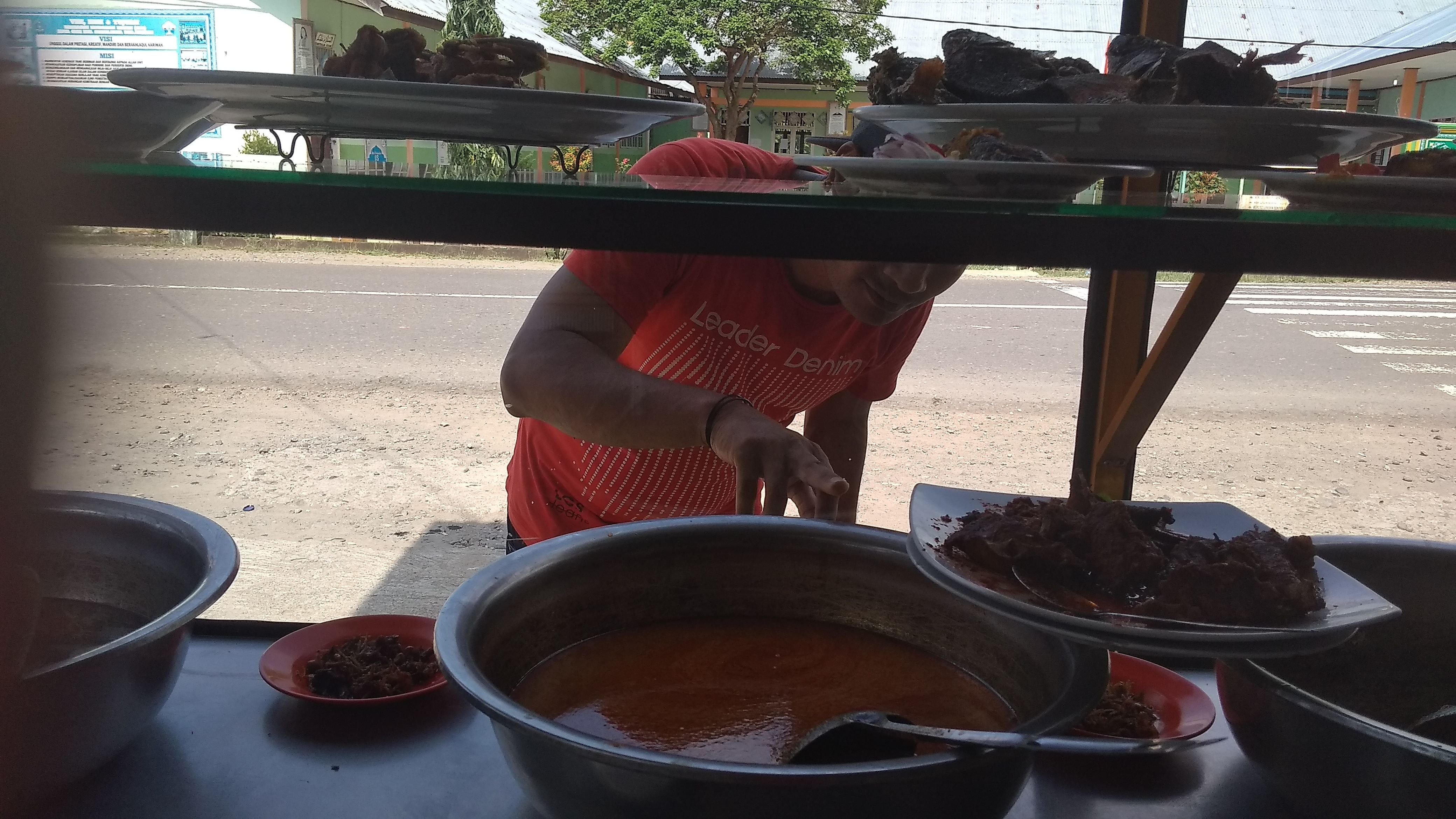Apa yang pertama kita lakukan ? Memperhatikan menu-menu yang tersedia dulu dari balik rak tersebut. Baru setelah itu menyentuh kaca rak. Untuk apa ? Sebagai isyarat bagi penjual untuk memilih pilihan yang telah disentuh tadi.