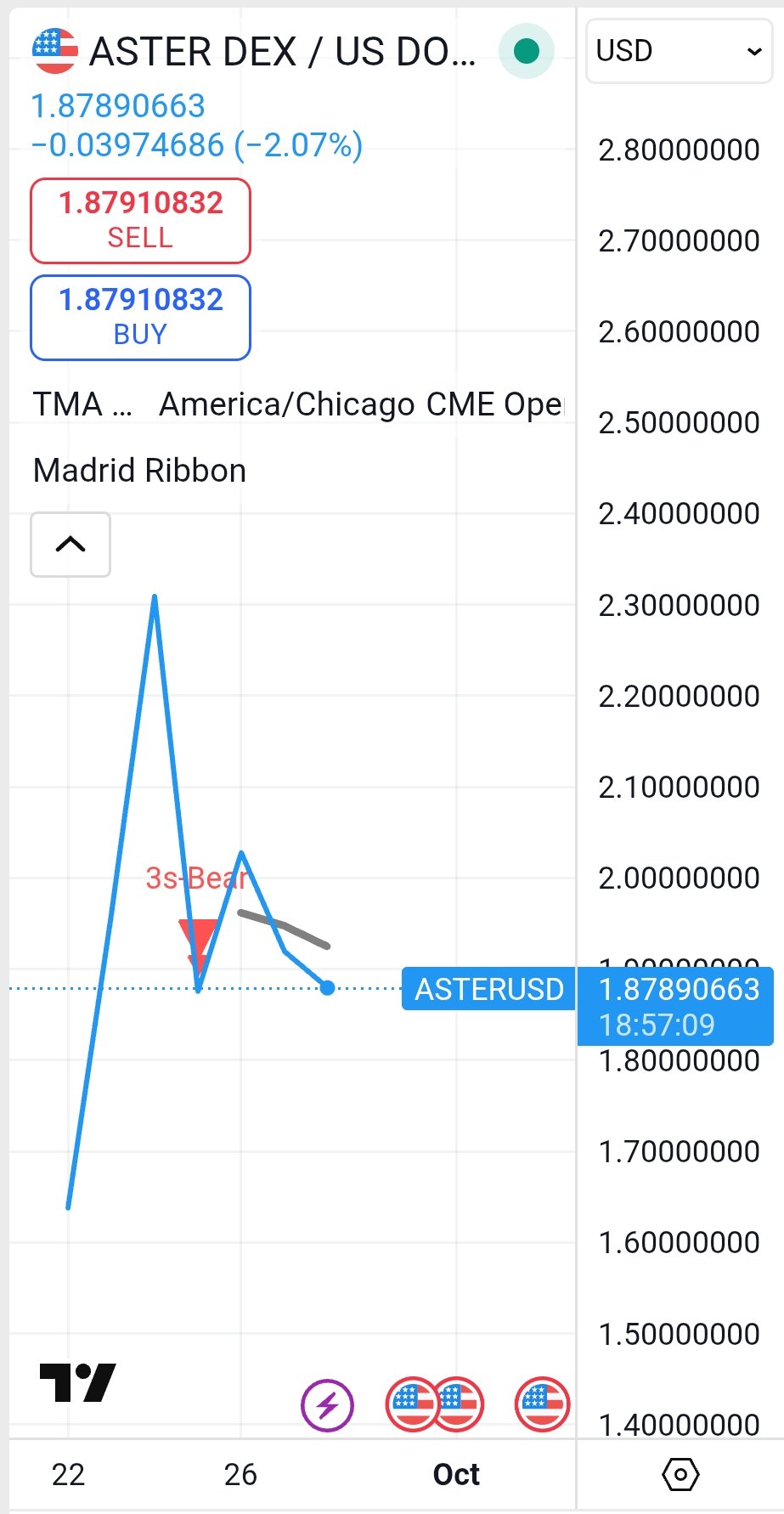 Aster (ASTER) adalah Bursa Terdesentralisasi (DEX) non-kustodian canggih yang baru-baru ini menunjukkan volatilitas teknis, menunjukkan pola Bear 3s pada grafik TMA Overlay-nya. Pola grafik ini biasanya menunjukkan potensi pembalikan bearish jangka pendek, yang menunjukkan bahwa pelaku pasar mungkin mengantisipasi koreksi harga meskipun platform ini memiliki kekuatan fundamental sebagai protokol perdagangan generasi mendatang.