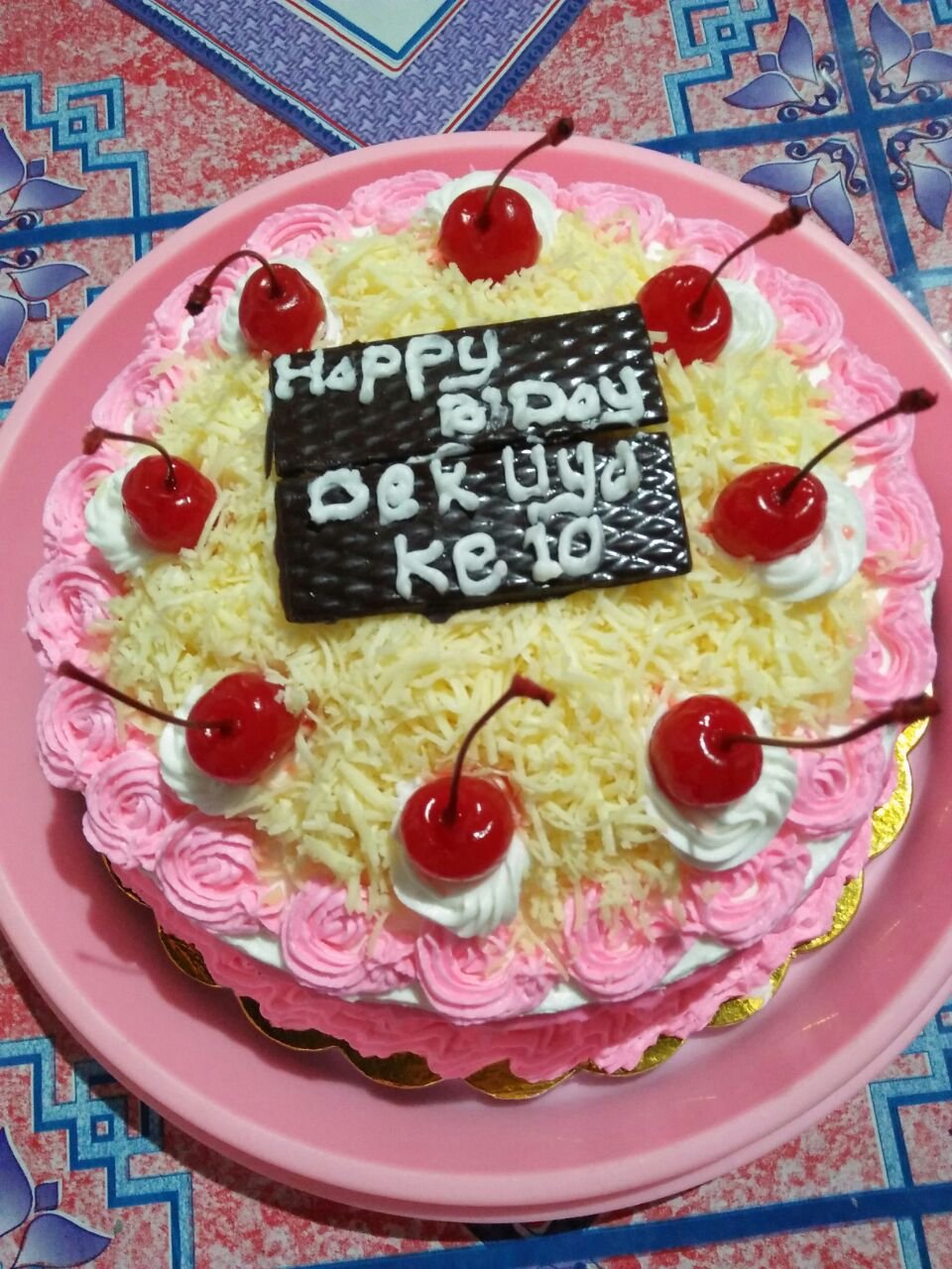 - Kue tart nya selesai, jika anda ingin memberi ucapan atau nama bisa diatas pagar coklat yang diletak diatas keju...