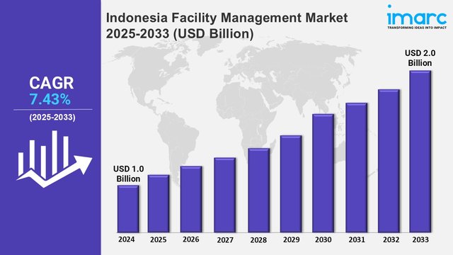 The Indonesia facility management market size reached USD 1.0 Billion in 2024. Looking forward, IMARC Group expects the market to reach USD 2.0 Billion by 2033, exhibiting a growth rate (CAGR) of 7.43% during 2025-2033.