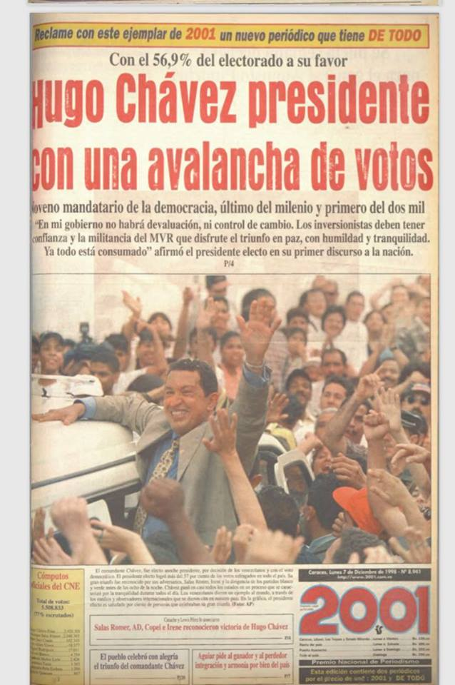 On December 6, 1998, Lieutenant Colonel Hugo Rafael Chávez Frías was elected President of Venezuela. His mark, that of a rebel ready for anything for the salvation of his country of a corrupt political class and spoiled by the honeys of oil.