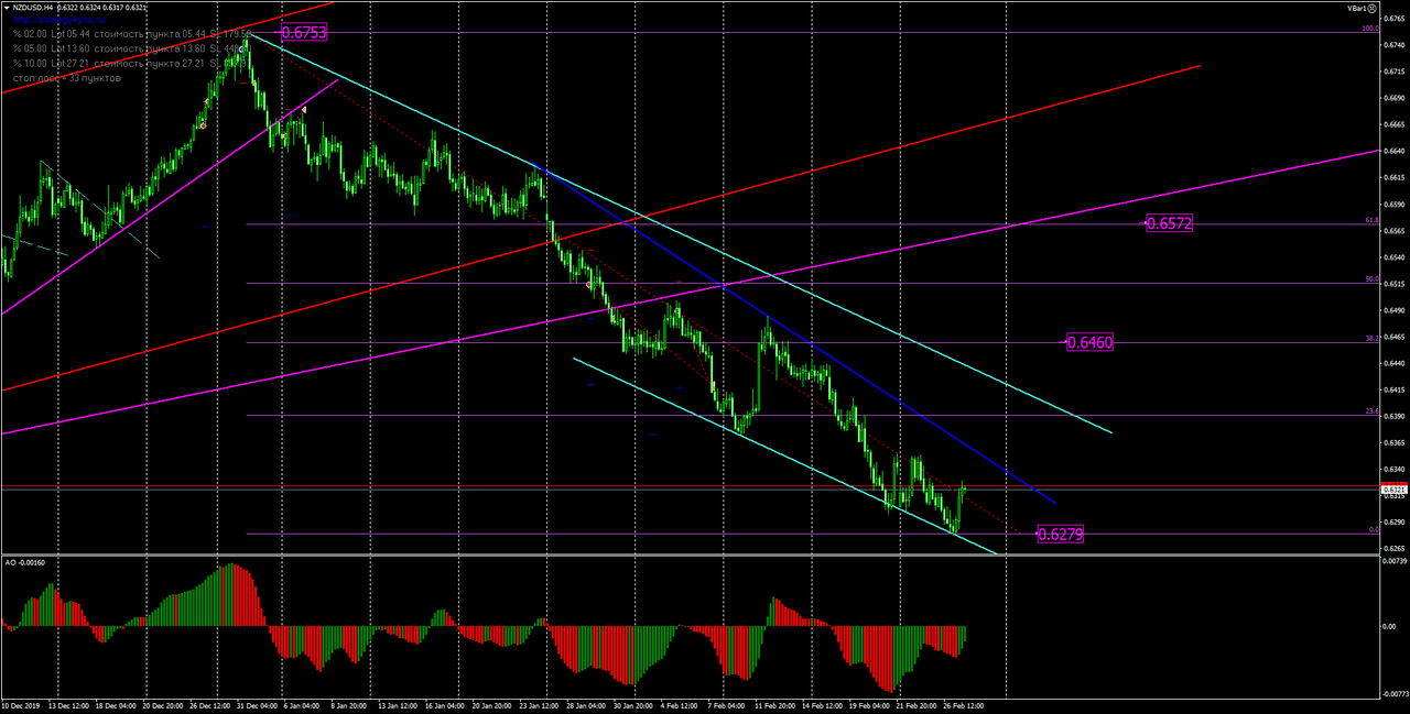На этой неделе валютная пара новозеландский доллар американский доллар отбивается от линии поддержки нисходящего канала, сформировав минимум 0.6279 и начинает корректироваться. При условии продолжения коррекционного движения, ждем реакцию цены на линию сопротивления нисходящую. На отбое от нее рассматривам сигнал в продажу к переписи минимума 0.6279. Пробой данного уровня, это снижение цены к линии поддержки нисходящего канала. Если пара пробивает линию сопротивления нисходящую, на ретесте ждем продолжение коррекционного движения к линии сопротивления нисходящего канала и реакцию цены на данную линию.