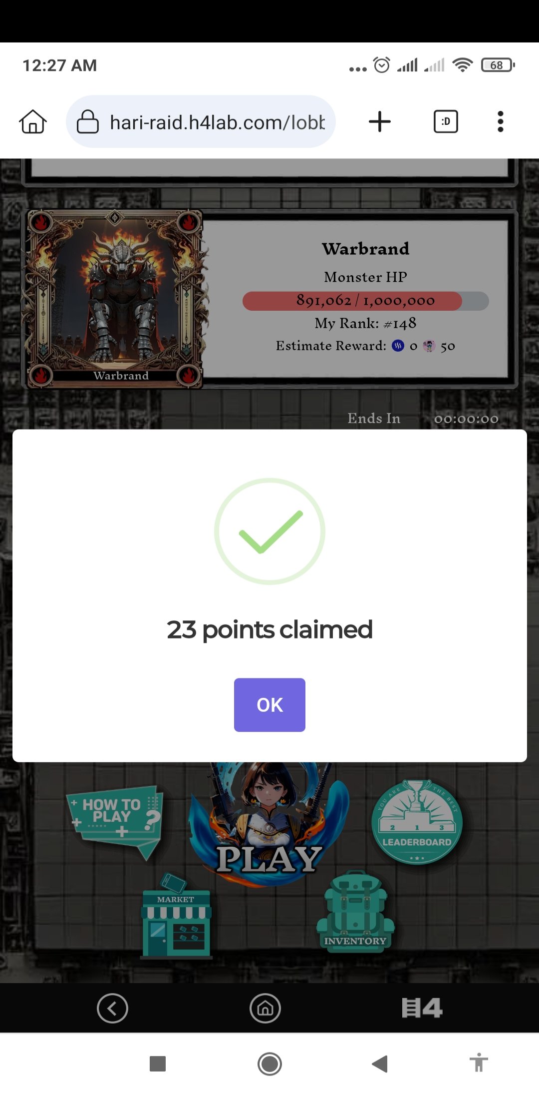 Today I logged in and claimed my daily reward of 23 points, which felt really rewarding! It’s always exciting to be back in Hari Raid, ready for more thrilling battles. This is my sixth gameplay, and I’m feeling more confident and inspired to keep improving and achieving higher results next time!