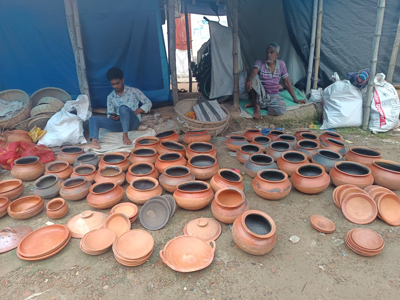 Many years ago, people had a lot of trouble cooking food. Now, the modern era has come, but we no longer have to face any problems while cooking. But I want to say one more thing here. Still, many people use clay pots and many people still buy and sell them. In the picture, you can see various types of clay pots, banks, and other things. Things that are still used by more or less people. But we use nose banks to save money.