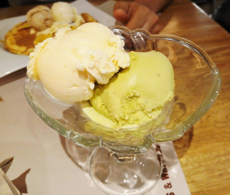 Sofia ordered a cup of ice cream, pistachio and vanilla, I really like how it looks, a beautiful presentation, in fact all the dishes have a special touch