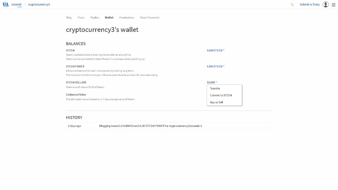 ブログの投稿などによって貰えるSDは、保有しているだけでは利子が付きません。従って初期であればSPに交換した方が良いでしょう。変更方法には「Convert to STEEM」と「Buy or Sell」の2種類の方法があります。