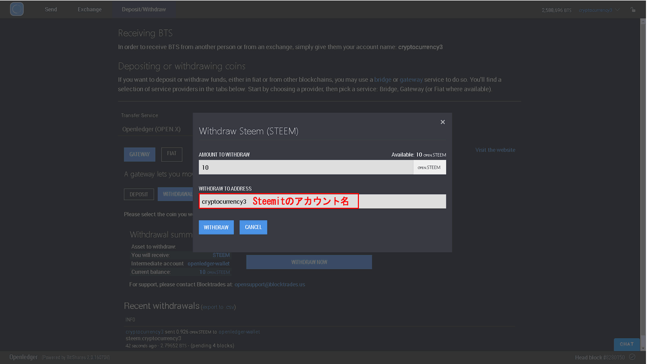 1-1.STEEMをオープンレジャーで購入してSPに変更する