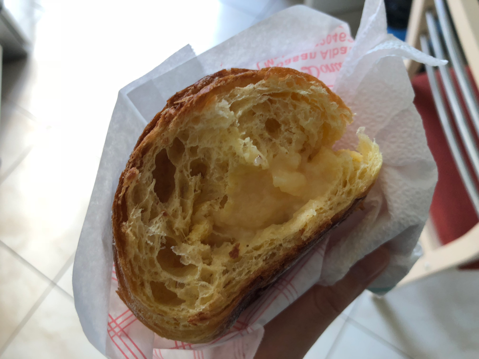 アルバニアではクロワッサンにはカスタードクリーム、チョコレート、ママーレドなどが詰まっています。好みは分かれるかもしれませんが私は嫌いではないです。というかカスタードクリームとチョコレートは結構好きです。