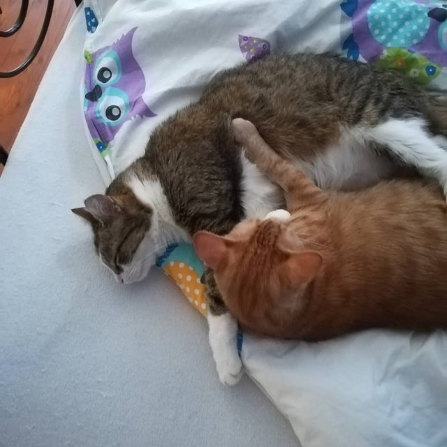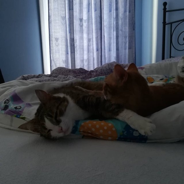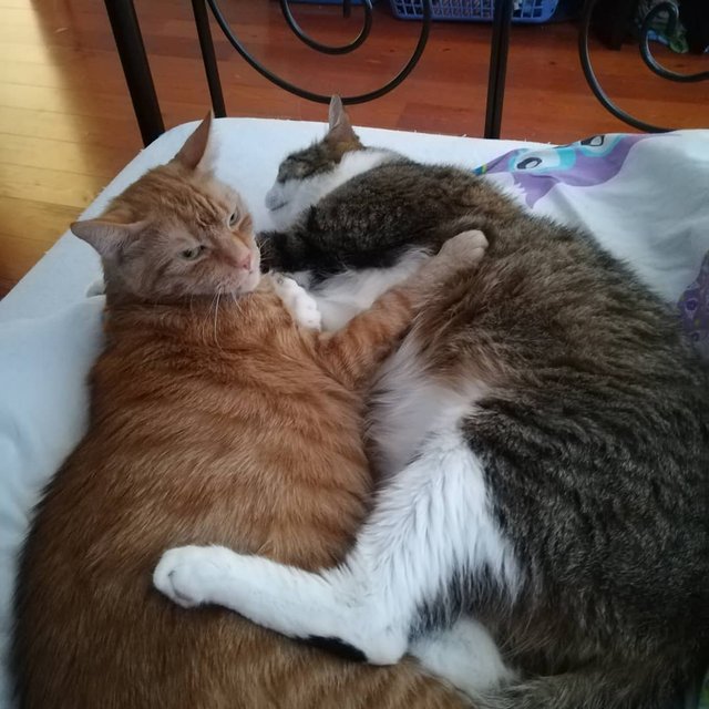 Meine Lieblinge beim kuscheln 🐱🐈♥️ #katzen #kater #share2steem #meinLiebling #lovemycat #cat #tiere #jimmyundmerlin #animals #harryskatzen #kuscheln #bestefreunde #liebe