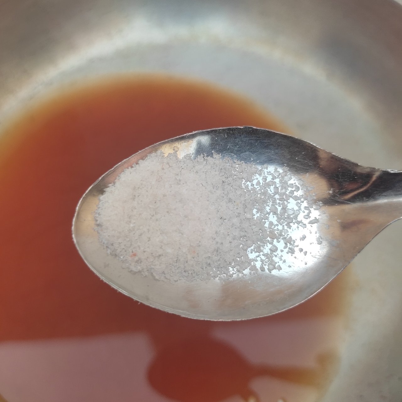 After filtering and extracting liquid I started final steps. I added liquid in container. I added white vinegar to get sour taste. It also helps for the long term preservation. I added required salt and sugar in the container. I added red chilli powder.