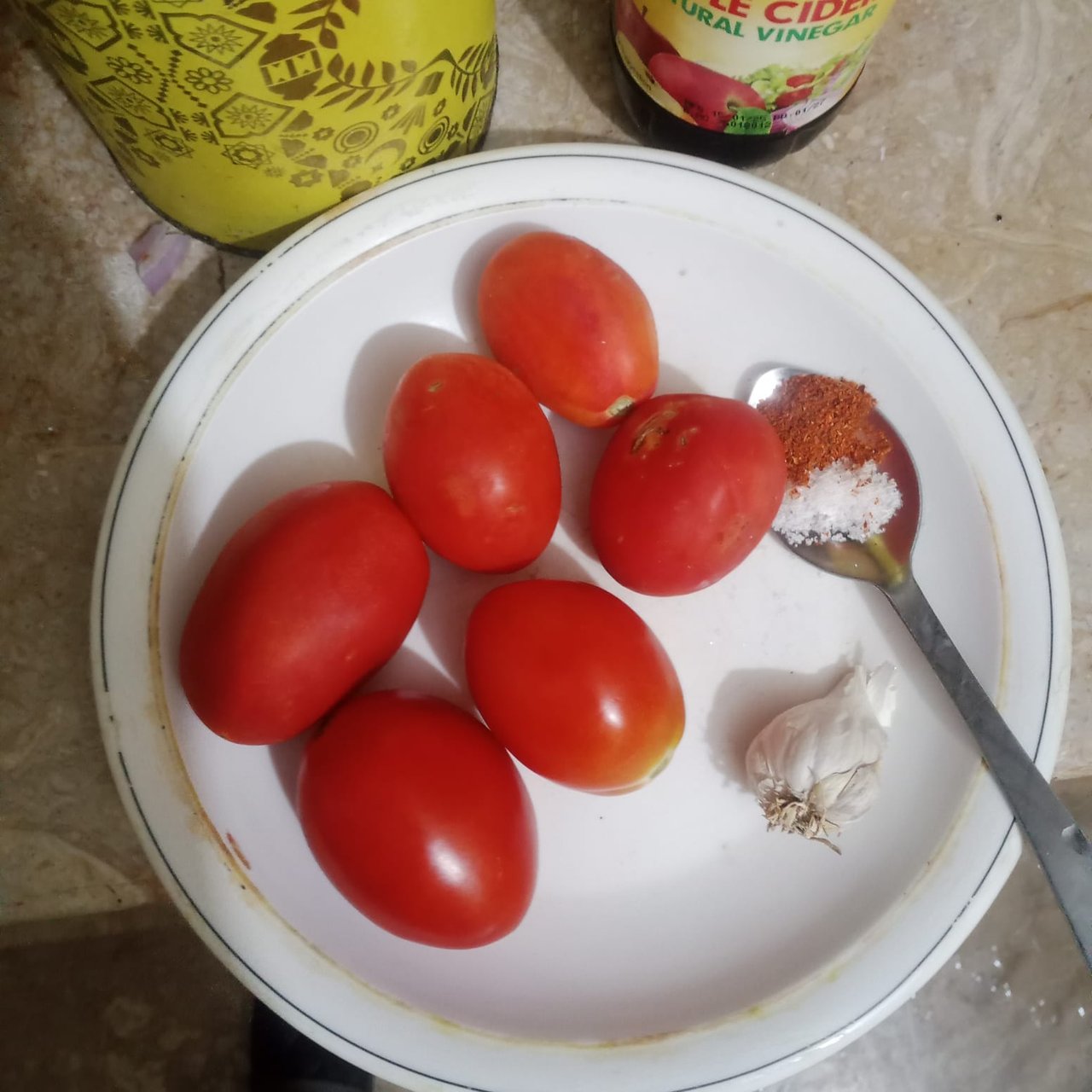 First I take tomatoes washed it and cut it into little pieces, then I take pan added the chopped tomatoes and allowed to cook for few minutes. I added little water and added garlic cloves. Cooked it at lower steam untill it was done.