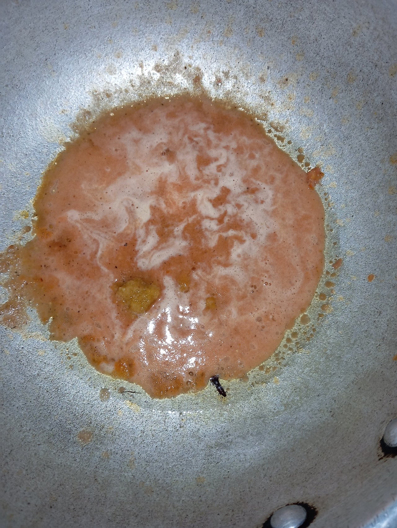 I used the blender jug for blending it and then stain it. I keep it aside then take pan added one tsp of oil cooked it then added one clove and cinnamon cooked it for a while.
