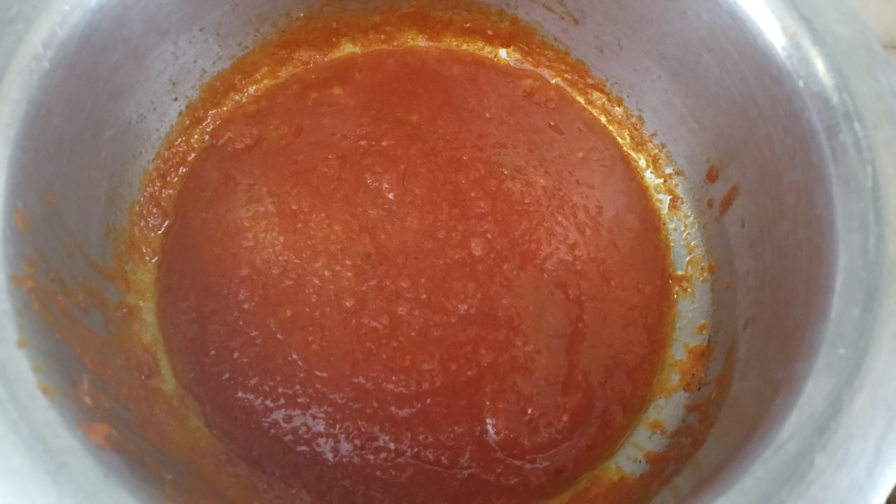 • Now ,blend this tomato mixture and stevie it to remove tomatoes skin and seeds.