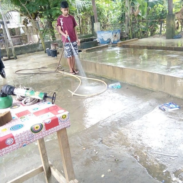 Seorang pelajar sedang bekerja di sebuah tempat pencucian mobil demi membiayai sekolahnya.