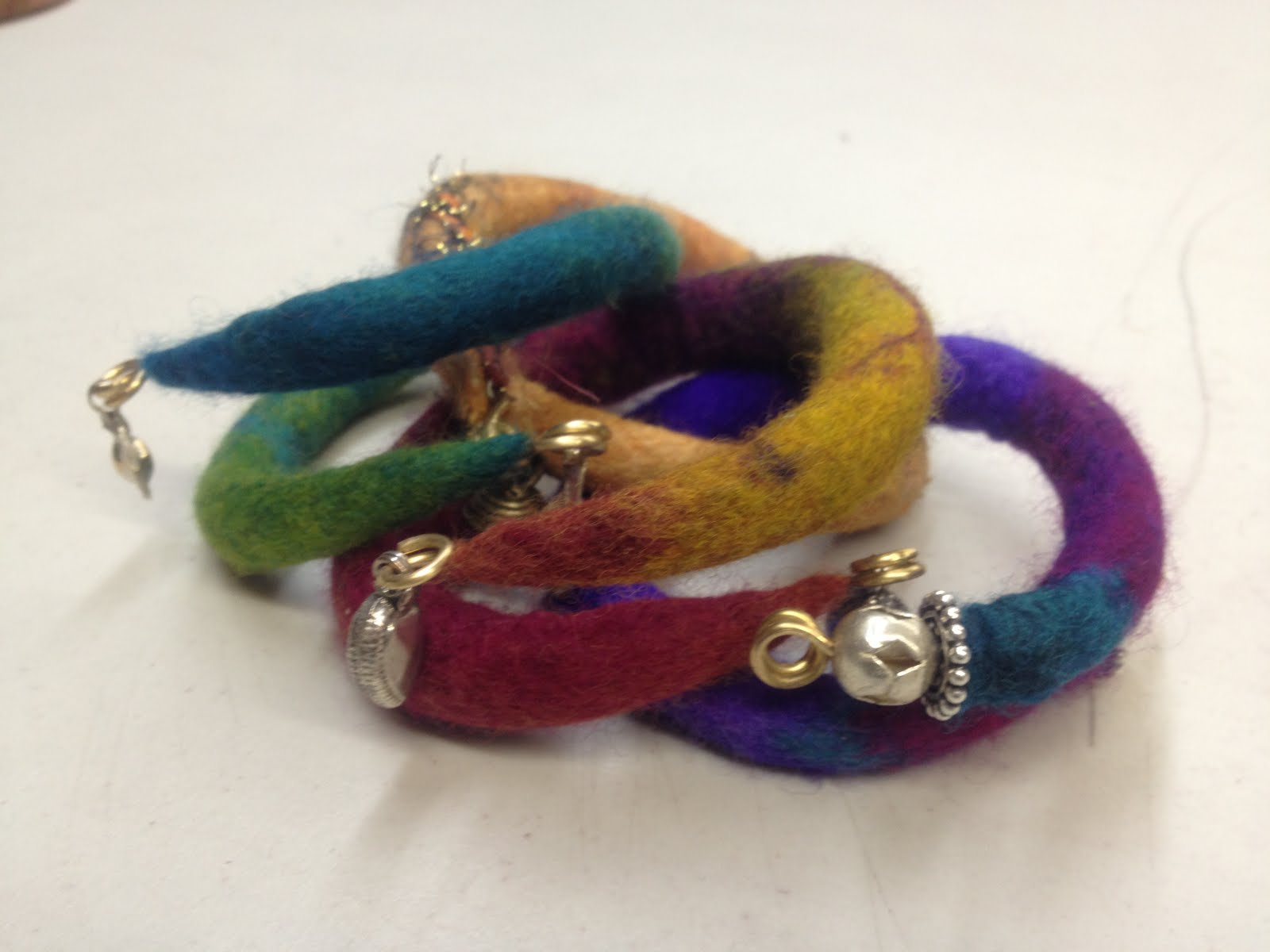 Felting is a process of interlocking wool fibers. If you’ve ever shrunk a wool sweater or socks by accident, you know that wool felt is strong and it shrinks dramatically from the original size. Even if you’ve never felted before, you can quickly learn the process and then share it with a group of kids.Bracelets are a small and simple craft project to do with children. The size also helps to keep your costs down.