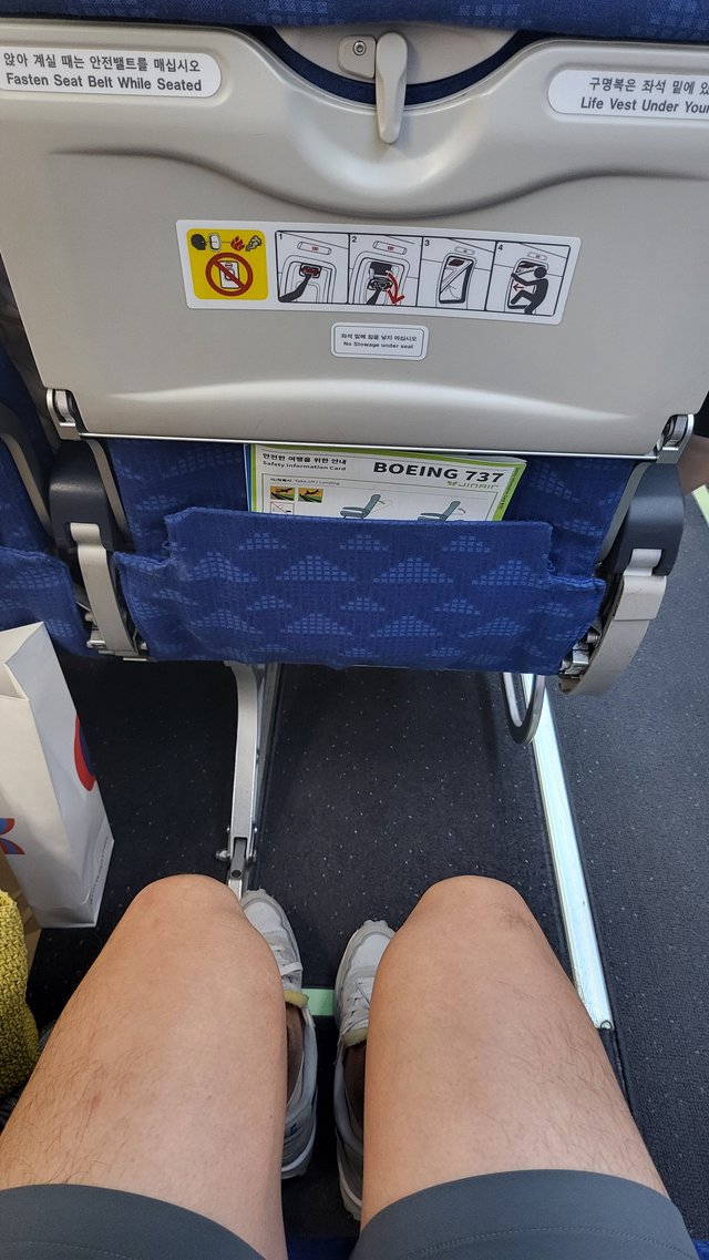 다리 꽈서 앉아도 남을 정도였지만 장시간 비행에 허리가 아파서 결국 정자세로 오랜시간 있었습니다.