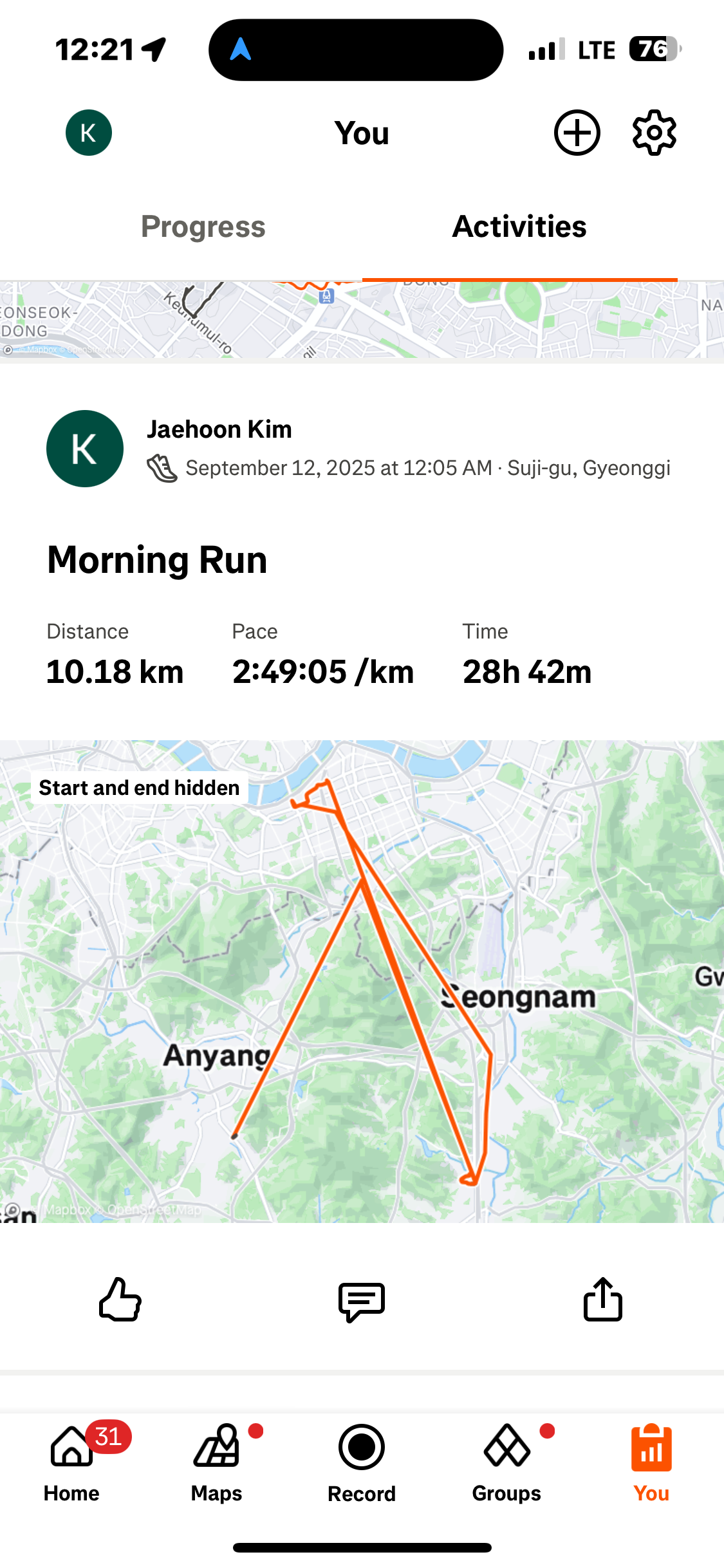 걸을 시간이 거의 없었지만 간신히 10km 넘겼습니다. 10.18km 걸었습니다.
