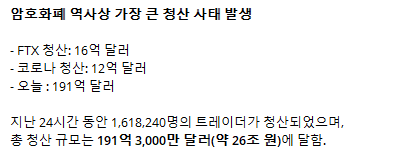 이번 청산은 약 191억달러의 청산이 있었다고 합니다.