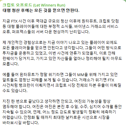 텔레그램을 운영중인 크립토 오프로드님의 글 중에서 일부 캡쳐 입니다.