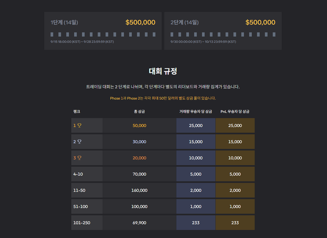 1회 대회와는 달리 50만 usdt 를 걸고 2번 나누어서 하네요.