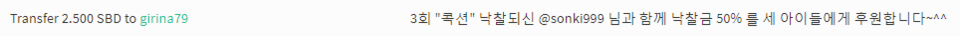 - 3회차 콕션 @sonki999 님 낙찰되셔서 2.5 SBD 기부완료!