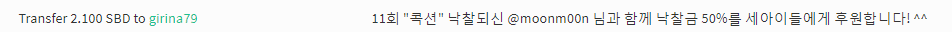 - 11회차 콕션 @moonm00n 님 낙찰되셔서 2.1 SBD 기부완료!