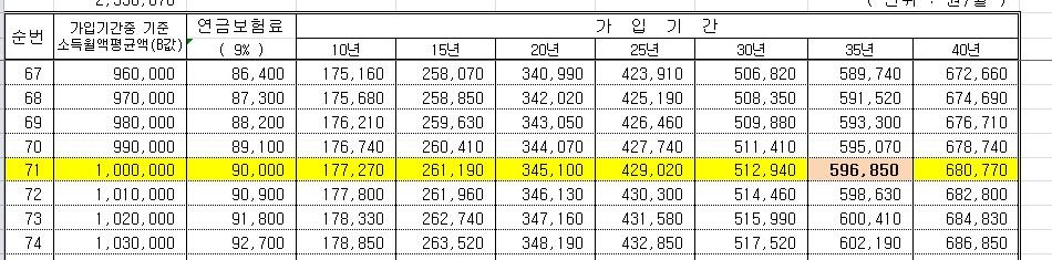 아내의 예상연금월액을 보니 이번 추가납입을 통해 약 20년가까이를 채웠고 60살까지 매달 9마원씩을 낸다고 치면 35년이 좀 넘게 납입을 할 수가 있을 것 같은데 월 60만원정도의 연금을 받을 수 있을 것 같다.