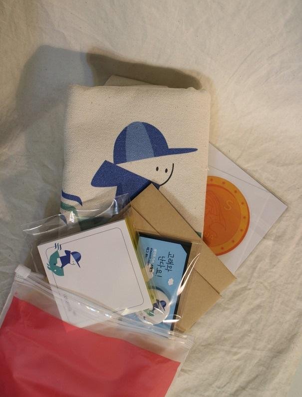 엽서세트+떡메모지+에코백(1ea)+캔뱃지 Ecobag+ Postcard(2ea)+memo paper(100ea)+pin badge