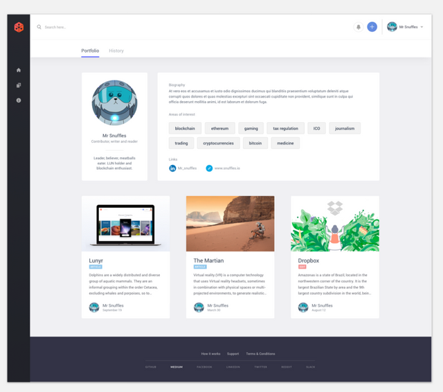 루나(Lunyr) 개발 업데이트 — 2017년 10월 19일 —글쓴이를 위한 포트폴리오 페이지