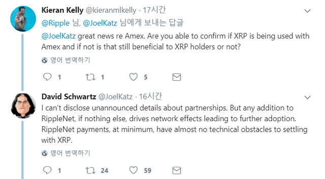 질문 : 아멕스가 XRP를 사용하는지 확답을 줄 수 있습니까? 그렇지 않다해도 여전히 XRP를 보유한 사람들에게 유익한 일인가요?