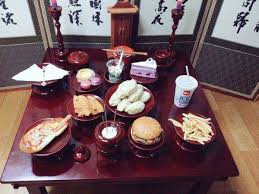 (현재 논란이 되고 있는 제사상. 음식 종류가 문제가 아니라, 롯데리아인게 문제라고 한다)