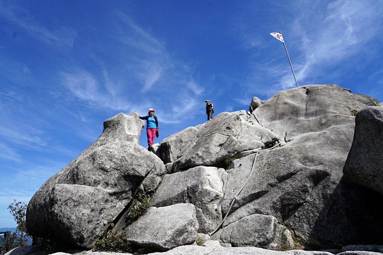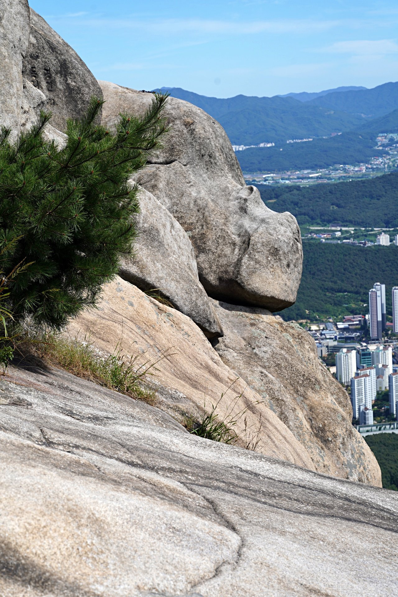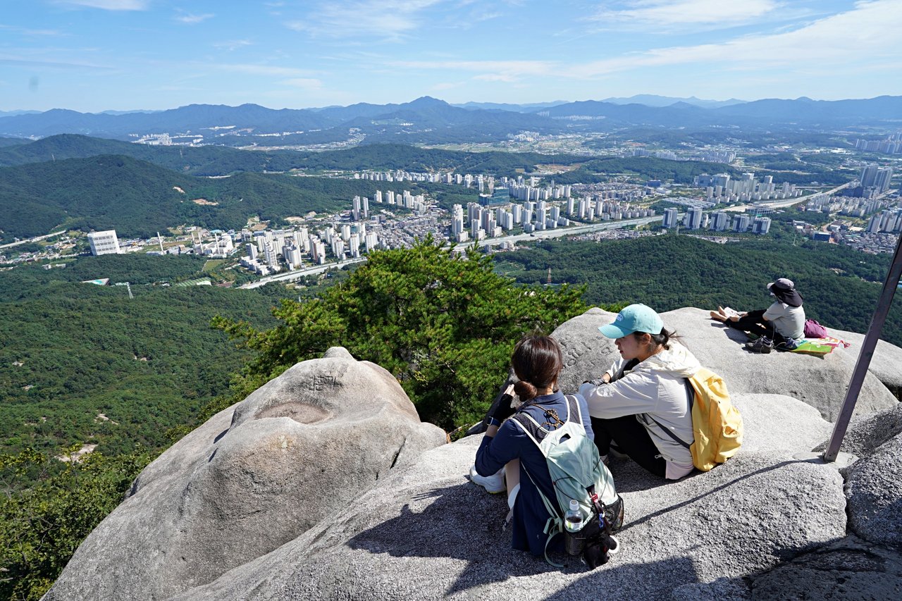 태극기가 휘날리는 불암산 정상에 도착했다. 정상은 거대한 바위로 이루어져 있어 로프 없이는 오르기 힘들 만큼 가파르다. 정상에서 바라보는 전망은 그야말로 절경이다. 멀리 북한산과 도봉산이 보이고, 서울 시내가 한눈에 들어온다.