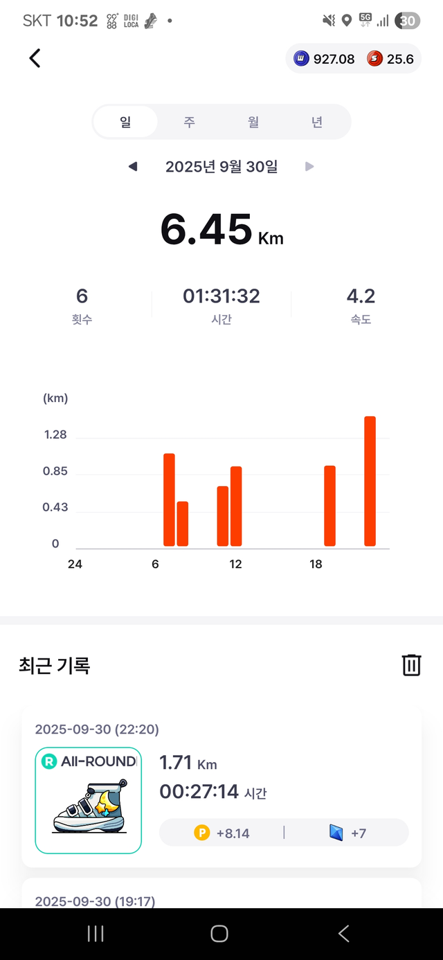 [M2E#569] 2025-09-30 - 오늘의 운동 완료(6.45/5) - Today's workout