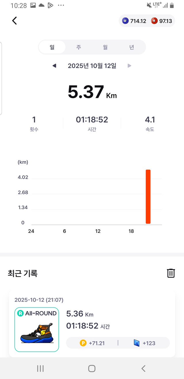 [M2E#581] 2025-10-12 - 오늘의 운동 완료(5.37/5) - Today's workouttalkit (70)in #kr • 4 days ago 안녕하세요 가야태자 @talkit 입니다. 오늘도 운동 완료 입니다. ^^ #오운완(20251012/5.37/5) 오늘도 열심히 쉬다가 저녁에 다녀왔습니다. 스고와 오늘의 운동완료 입니다. 감사합니다. Posted through the ECblog app (https://blog.etain.club) #kr-m2e #exercise #stepn #stepn-kr #workout #en #ecblog
