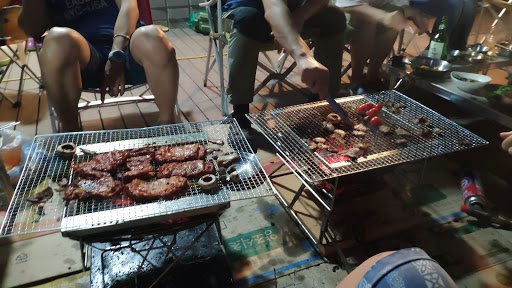 얘들은 물놀이하고.. 고기 먹고.. 어른들도 신나게 고기 먹고 술 마시고~