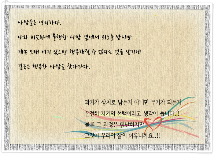 사실은 저에게 하고 있는 말, 저를 위한 변명인지도 몰라요. 이것도 따지고 보면 위선이겠죠!!ㅎ
