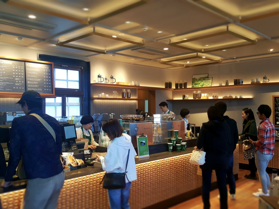 1시간 이상 센간엔 구경을 마치고.. 조금 쉬기 위해 센간엔 바로 옆에 있는 스타벅스로 갔습니다. 원래 이곳은 광산을 운영하던 회사의 사무실이었는데 회사가 이전한 후 문화재로 남은것을 스타벅스가 잘 활용했다고 하네요.