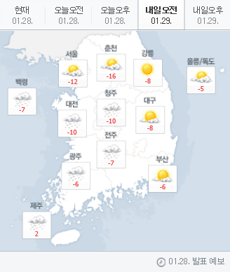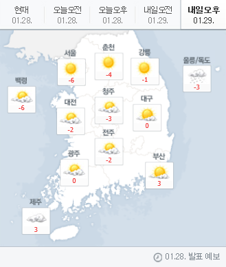 [weather] 2018년 1월 29일 전국 날씨nyke02 (38)in #kr-weather • 8 years ago 2018년 1월 29일 전국 날씨 특이사항 : 강풍주의보, 풍랑주의보 날씨가 오늘 주말사이 주춤했다가 내일 다시 영하라네요.. 와이프는 주중에 계속 애들과 집에 있으니 얼마나 힘들겠어요.. 그래서! 오늘 오후 몇시간만이라도 나가서 쉬다 오라하고 첫째, 둘째 돌보며 혼자 잠깐 육아 했습니다!! . . . 힘드네요. #날씨 주춤주춤 스텝#날씨밀당#육아는 언제나 힘듬#아빠한테 유독 과격한듯#회사가 더편함# #kr-newbie #kr #jjangjjangman