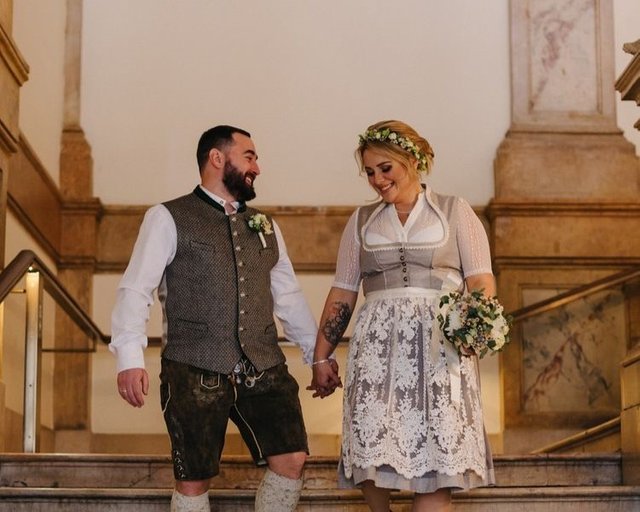 For women: The Dirndl is the centerpiece — a dress with a fitted bodice, a full skirt, and an apron. Traditionally, the apron knot’s placement even tells a story: tied left means single, right means taken, and center means traditional/unknown.