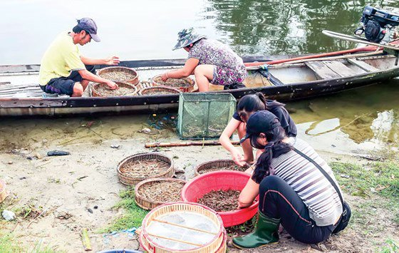 Quick traders buy shrimp and fish to catch the morning market in the district markets and large markets in Hue. The fishermen are quick to sell shrimp and fish products that have been caught to arrange fishing gear back home. With the money to sell fish, I call the nearby grocery stores to buy rice, cooking oil, fish sauce, sweeteners ... to serve the family members. Their life is so simple, from day to day on the water.